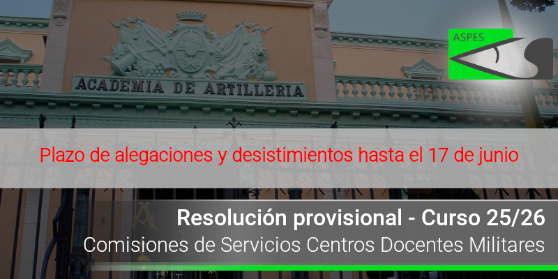 Comisiones de Servicios Centros Docentes Militares. Castilla y León (Curso 2025/26). Resolución definitiva