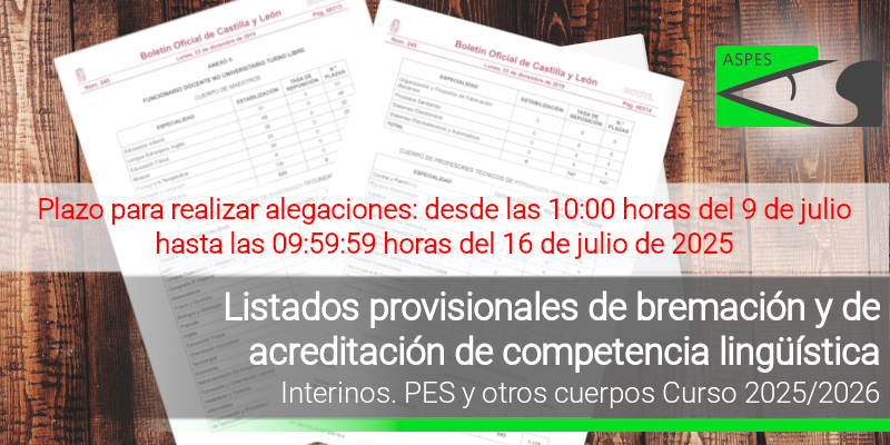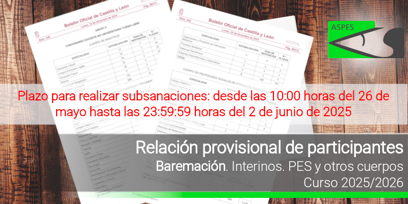 Interinos. Curso 2025 / 2026. PES y otros cuerpos. Listados definitivos de baremación