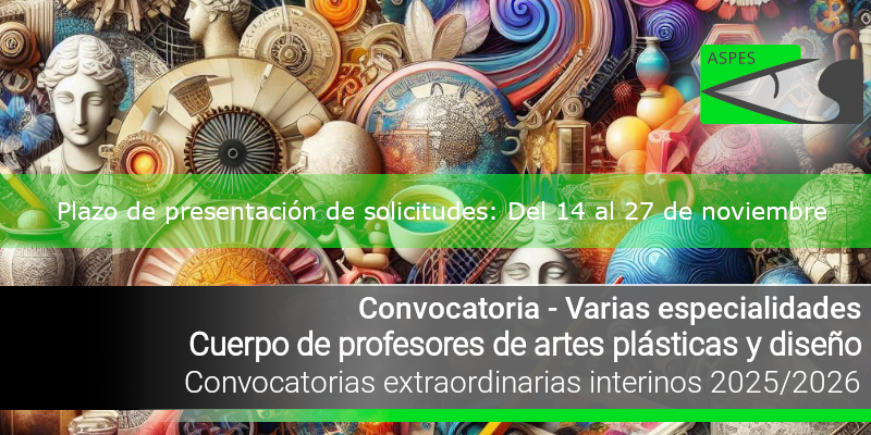 Interinos. Curso 2025 / 2026. Convocatorias extraordinarias. Varias especialidades. Cuerpo de profesores de artes plásticas y diseño. Convocatoria
