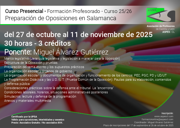 Curso Presencial. Preparación de Oposiciones en Salamanca 2025-2026 Leer más: Curso Presencial. Preparación de Oposiciones en Salamanca...