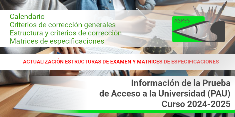 Estructura de examen orientativa y criterios de correción que se aplicarán para la corrección de los exámenes de las materias objeto de evaluación en la próxima convocatoria de la Prueba de Acceso a la Universidad (PAU)