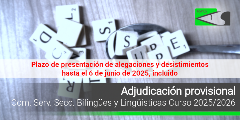 Adjudicación definitiva. Comisiones de Servicio Secciones Bilingües y Lingüísticas Curso 2025/2026